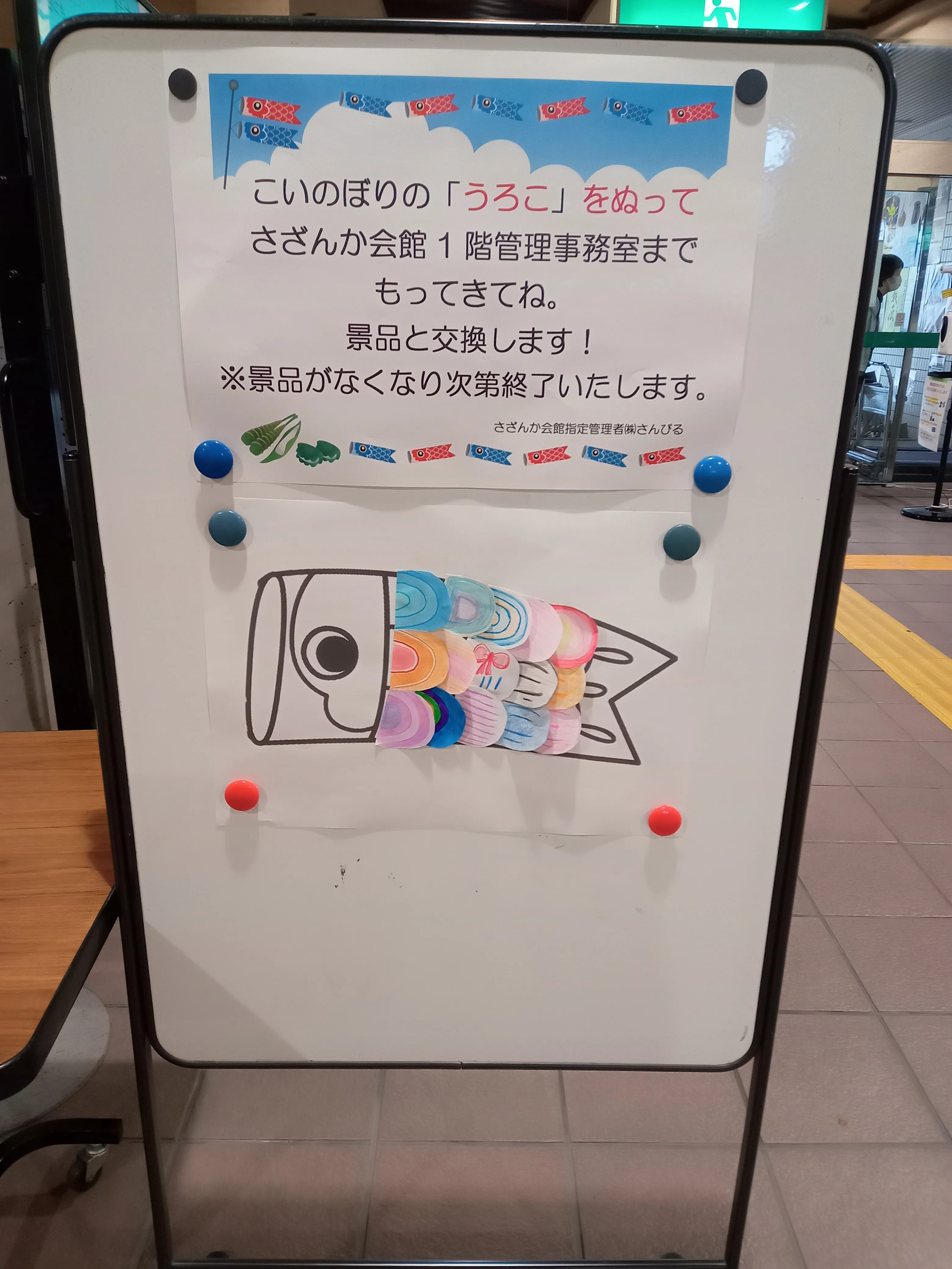 15日より「みんなでこいのぼりつくろう」のイベントを開催しました。